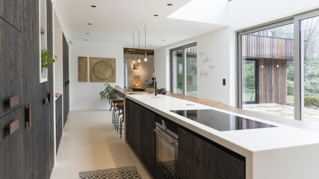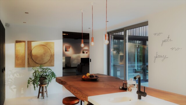 Deze nieuwbouwwoning in de villawijk Koningshhof te Schoten werd door Studio Zalig grondig aangepakt, uitgebreid met nieuwe ruimtes en heringericht tot een unieke locatie geschikt voor fotoshoots en videoopanme.