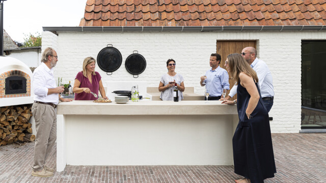 Deze woning ligt op één van de meest idyllische pleintjes van Vlaanderen in het pittoreske Damme. De woning werd volledig gerenoveerd en biedt plaats aan 18 personen verdeeld over 6 slaapkamers en 5 badkamers. De mooi aangelegde tuin met petanqueveld, buitenlounge, buitenkeuken met houtgestookte pizzaoven maken het plaatje af. Hier kom je genieten met een grote G.